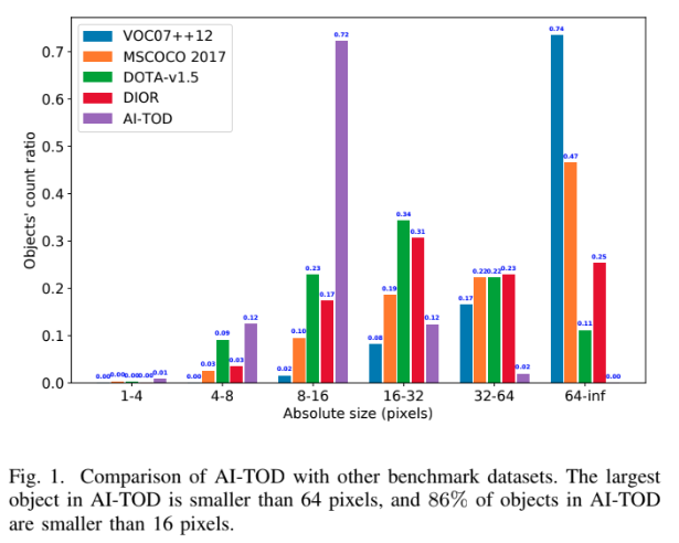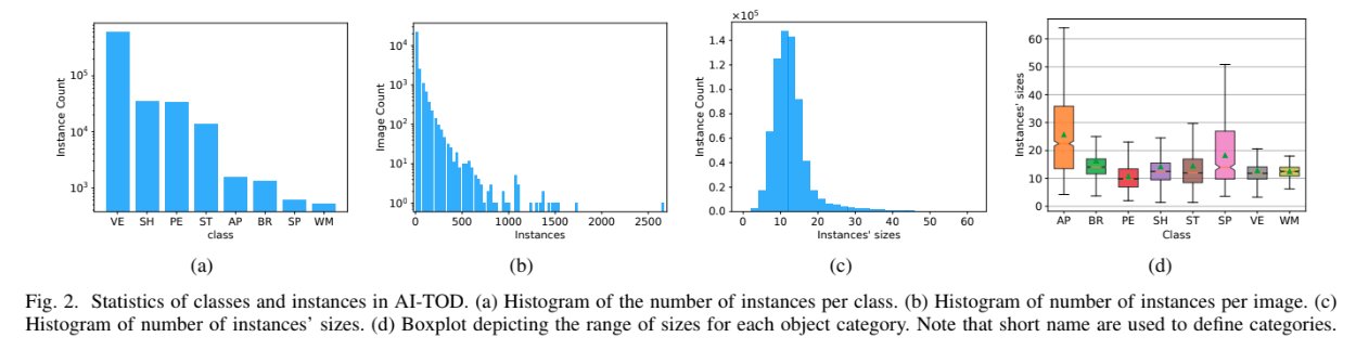 - AI-TOD는 DOTA-v1.5, xView, VisDrone2018-Det, Airbus Ship, Dior 데이터셋(항공 이미지)을 기반으로 구축