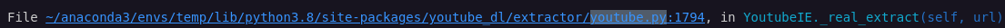 1. 이렇게 위와 같은 에러가 발생한다면, 에러 메시지에서 ctrl+F 로 youtube.py를 검색한다.