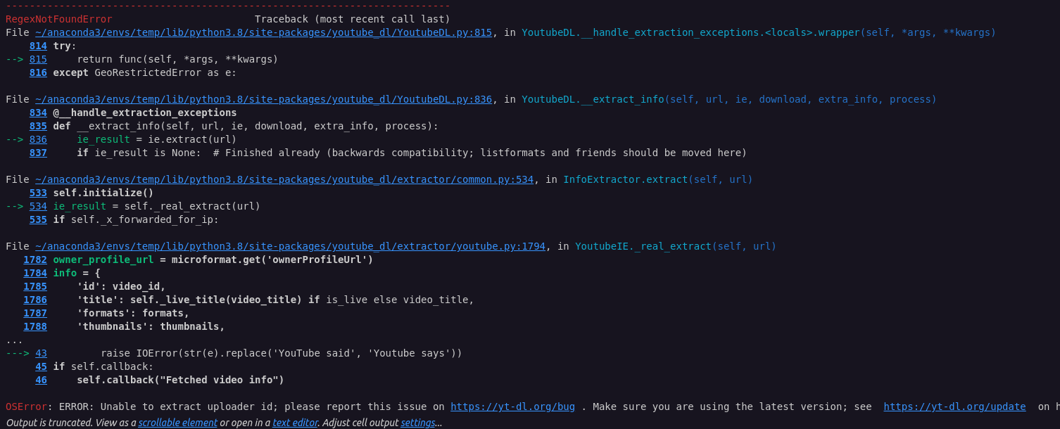 OSError: ERROR: Unable to extract uploader id; please report this issue on
