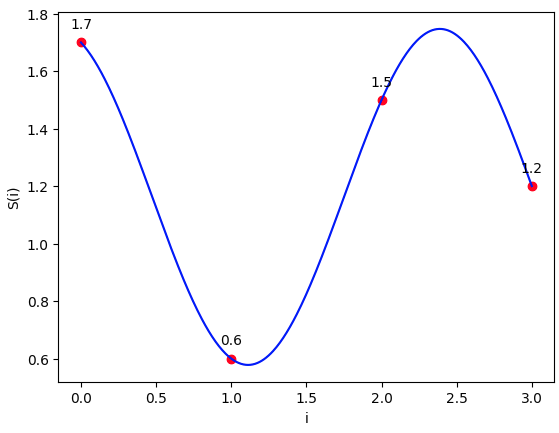- 위 네 개의 점을 이산 퓨리에 변환하면