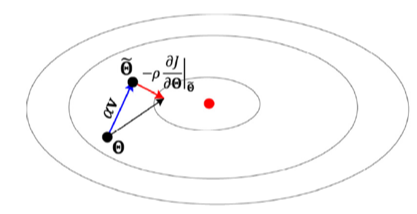 \mathbf v = \alpha \mathbf v - \rho \frac{\partial J}{\partial \Theta}|_{\tilde \theta} \\