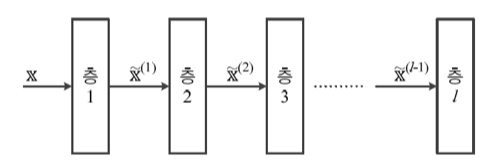 위 식에서 $\mathbf{\tilde x}$는 직전 층의 출력값을 의미한다. $\mathbf{\tilde x}$에 선형 연산을 적용한 결과값을 $z$, 여기에 활성함수를 적용한 값이 $y$이다.