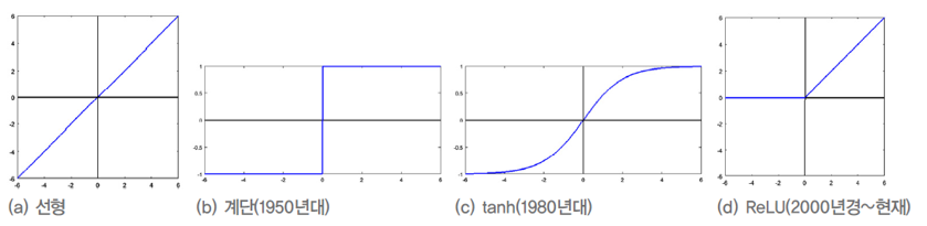 그래서 계단 함수와 tanh, ReLU가 순서대로 사용되어왔다. sigmoid와 tanh의 범위는 유사하지만 범위가 [0, 1], [-1, 1]인 차이가 있어 tanh가 우월하다고 입증되었다.