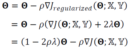 \mathbf \Theta = \mathbf \Theta - \rho \triangledown J_{regularized}(\mathbf \Theta; \mathbb X, \mathbb Y) \