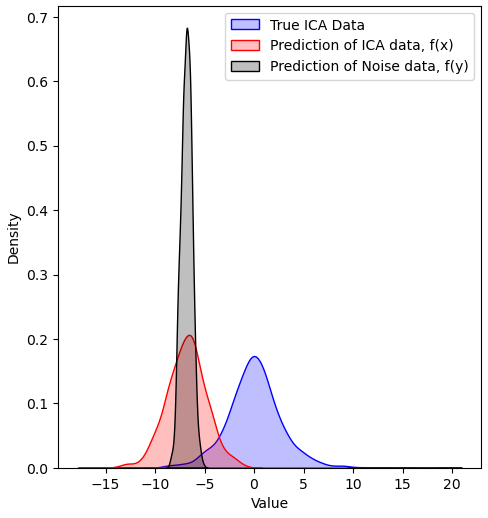 - 즉 ICA 모델로부터 만들어진 입력 데이터는 노이즈 데이터가 만들어진 가우시안 분포에 속할 확률이 낮다는 것이다.