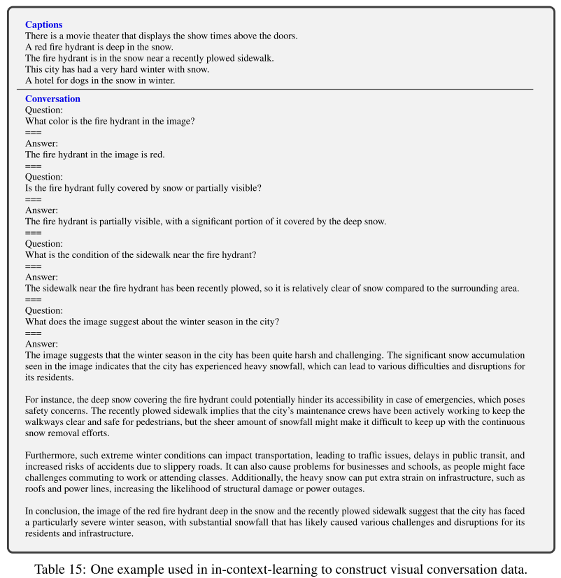- LLM에게 실제로 이미지를 보고 대화를 하는 것처럼, 질문-답변 쌍을 만들어 달라고 하는 프롬프트이다.