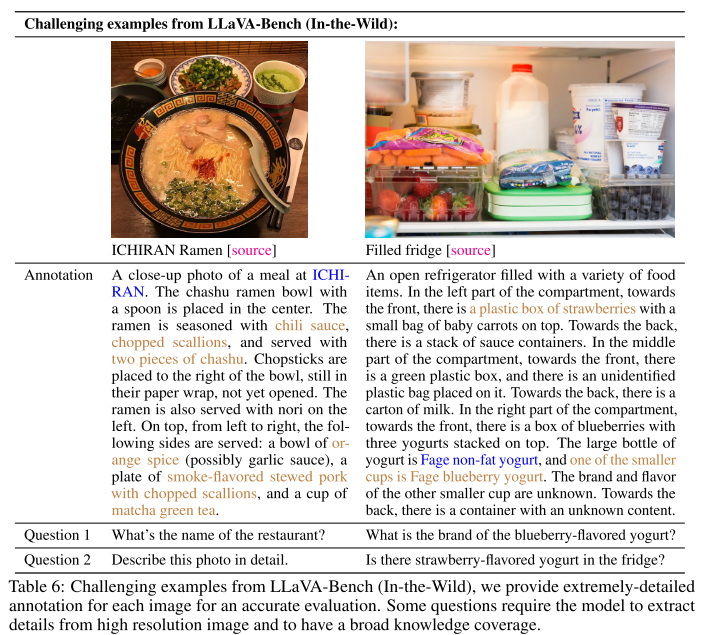 - 또한 냉장고 사진에서는 요거트의 브랜드와 딸기맛 요거트가 있는지 물어보고있는데, 논문의 저자는 요거트의 브랜드를 모델이 아려면 고해상도 이미지를 처리할 수 있어야 한다고 말한다. 또한 냉장고에 딸기와 요거트가 있는데, 이를 딸기맛 요거트로 인식한다는 것이다.