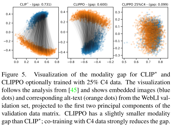 - 위 그림은 CLIP*와 CLLIPO간 Modality Gap을 보여준다.