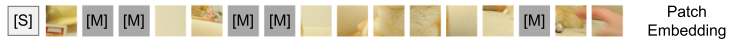 - 여기서 N개의 이미지 패치 중 40%를 마스크 임베딩 토큰 $e_{[M]} \in \mathbb R^D$ 로 교체한다.