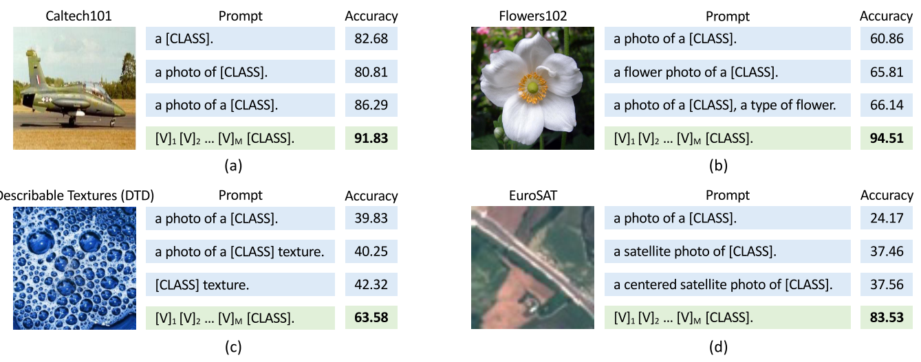 - CoOp은 학습 가능한 프롬프트 벡터를 텍스트 인코더의 입력으로 넣어, 프롬프트 학습의 중요성을 보여주었다.
