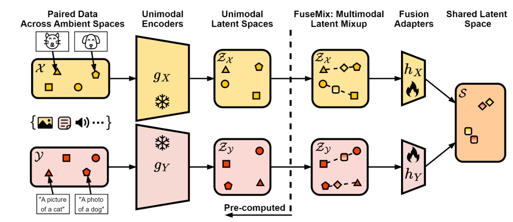 - 그리고 FuseMix를 적용한 후 Fusion Adapter $h_X, h_Y$를 거쳐 Shared Latent Space $S$ 에 매핑한다.