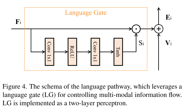 - PWAM에서 계산된 출력은 LG(Language Gate)를 거쳐 가중치화 되고 피쳐맵 $V_i$에 Element-wise로 더해진다.