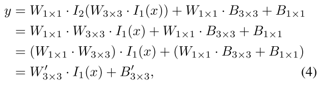 - 결과적으로 3*3 → 1*1 순서로 계산되는 두 개의 컨볼루션을 하나의 3*3 컨볼루션으로 융합할 수 있음