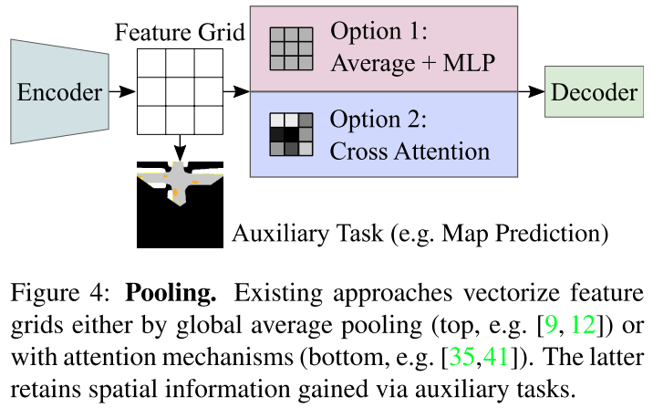 - 그래서 Option 2를 선택한다. GAP 대신 Cross Attention을 사용하여 풀링하는 것이다. 이 방법은 기존 연구(Interfuser)에서도 사용되었다고 언급한다. 목적은 피쳐맵의 위치 정보를 최대한 보존하면서 풀링하는 것이다.